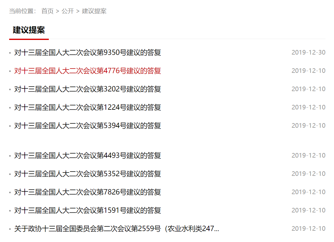 十二是加强人大、政协提案信息公开。认真做好全国人大代表和全国政协委员提案办理结果公开工作,在印发的建议提案办理工作通知中明确要求按照“积极稳妥、逐步深化”原则,对于涉及公共利益、公众权益、社会关切及需要社会广泛知晓的建议和提案办理复文,应当公开全文或以摘要公开的形式予以公开。2019年共公开建议提案656件,其中全文公开425件,摘要公开127件。