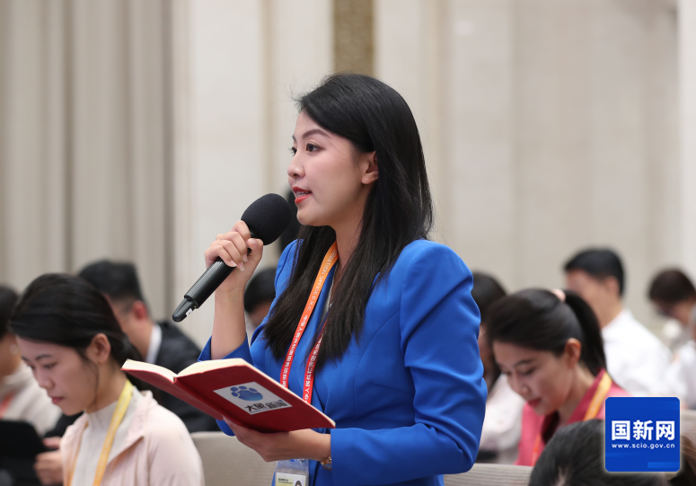 国务院新闻办公室于2025年9月16日(星期二)上午10时举行“高质量完成‘十四五’规划”系列主题新闻发布会,请农业农村部部长韩俊、农业农村部副部长张兴旺、农业农村部副部长麦尔丹·木盖提介绍“十四五”时期农业农村发展成就,并答记者问。图为大象新闻记者提问。刘健 摄